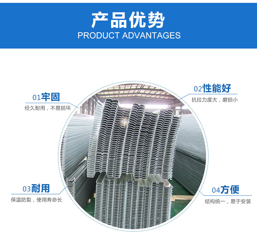 760開口樓承板即建筑壓型鋼承樓板采用鍍鋅鋼板經(jīng)輥壓冷彎成型,其截面成V型、U型、梯形或類似這幾種形狀的波形,主要用作樓承板,也可被選為其他用途。
